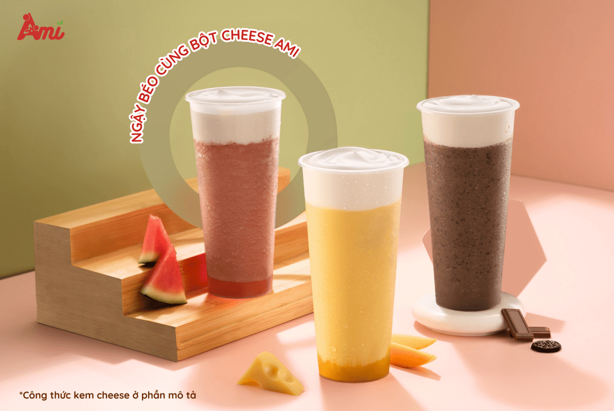 Chúng ta đã cùng tìm hiểu về bột cheese trong ngành pha chế rồi, vậy hôm nay để đi vào thực hành chúng ta cùng thử ngay bộ 3 công thức “ngậy béo” này nhé. Bật mí với các bạn với công thức kem cheese ngon “bất bại”. Chỉ 1 phút 30 giây với bột cheese Ami bạn đã có ngay topping thơm ngậy, dù là trà hay đá xay đều vô cùng ngon miệng.