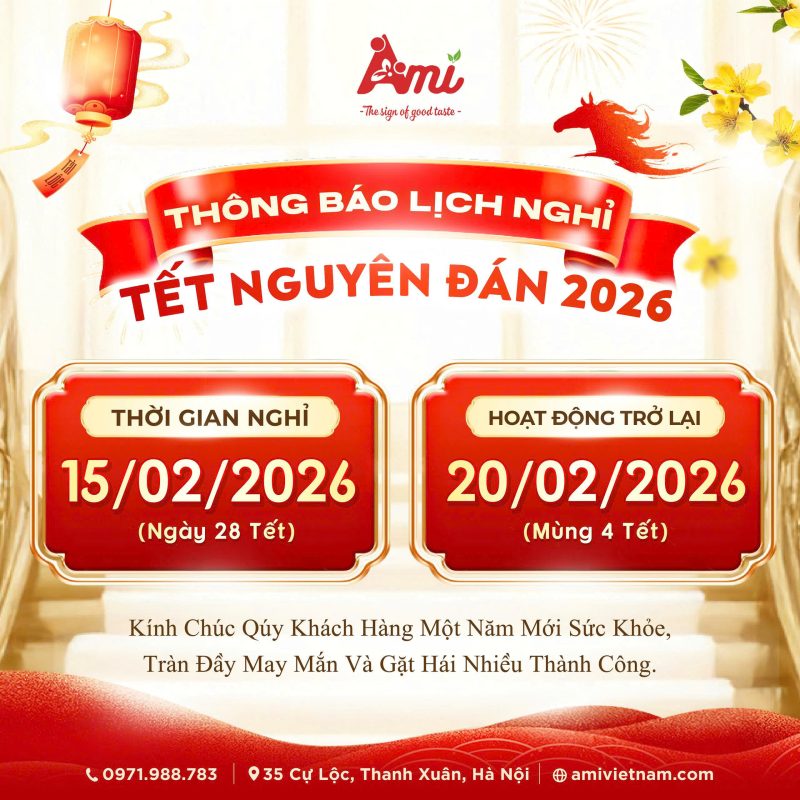 Nhân dịp Tết Nguyên Đán 2026, Ami Việt Nam xin trân trọng gửi lời cảm ơn sâu sắc đến Quý Khách đã luôn tin tưởng lựa chọn sản phẩm của chúng tôi trong suốt thời gian qua. Sự ủng hộ của Quý Khách chính là động lực để Ami Việt Nam không ngừng nâng cao chất lượng sản phẩm và dịch vụ.