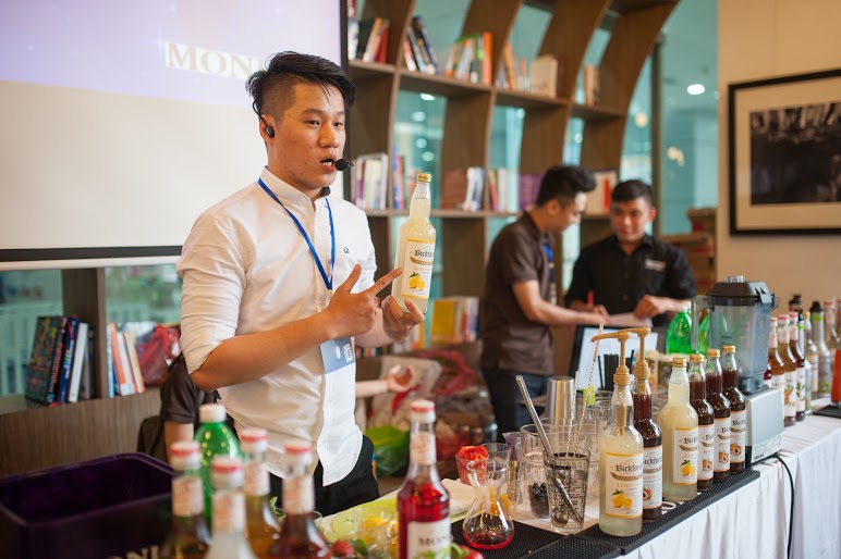 Tiếp theo đó, một loạt các concept về đồ uống hấp dẫn nhất mùa hè như: Blueberry Lemonade, Peach Lemonade, Kiwi Lemonade, Guava Spicy Mocktail, Elder Kiwi Mocktail, Blueberry Cinnamon Mocktail, Peach Raspberry Tea, Peach Yoghurt Lassi (Ice Blend) và Tropical Wings… đã được các chuyên gia pha chế đưa ra và hướng dẫn rất cụ thể cho các khách hàng tham dự.