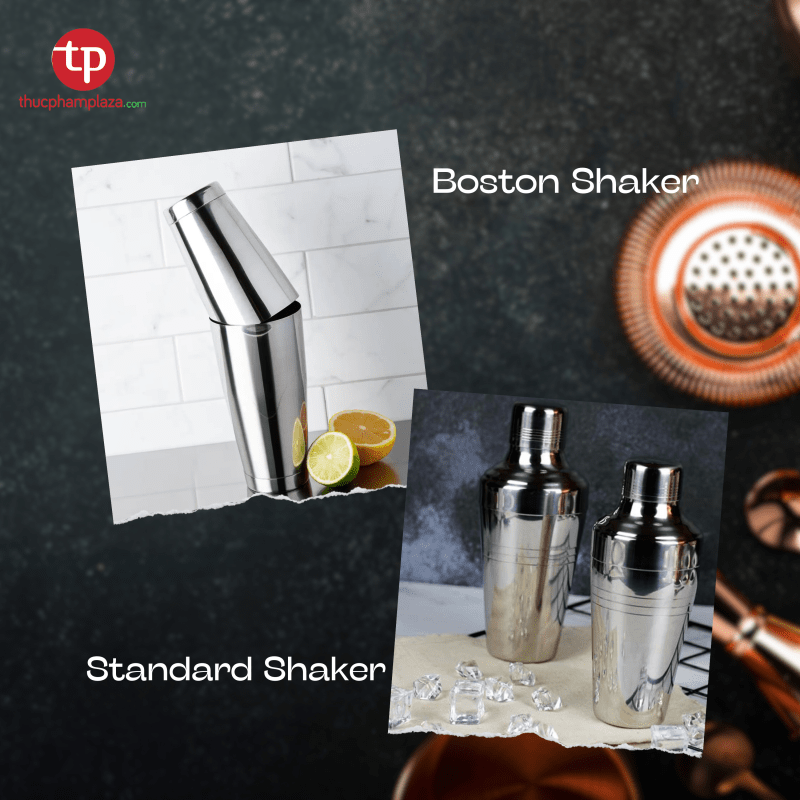 - Standard Shaker: Gồm có 3 phần được làm bằng thép không gỉ, bao gồm thân bình có sức chứa từ 8 đến 24 ounces (1 oz ~ 30ml), 1 đầu lọc và 1 nắp đậy. Loại bình này có 3 kích cỡ khác nhau. Loại dưới 0,5 lít, loại từ 0,5 – 1 lít, loại 1 lít- 1,5 lít. Là dụng cụ pha chế được các Bartender châu Á ưa chuộng hơn vì nó dễ sử dụng hơn loại Boston shaker. Dễ dàng thao tác với hai tay hoặc thậm chí là chỉ cần một tay.