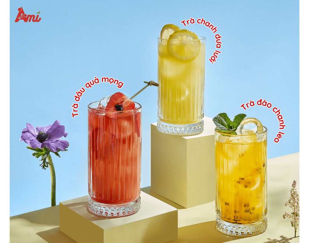 Hương vị của trà nhài Ami luôn được xếp vào hàng top những loại trà được yêu thích nhất. Bởi hương nhài thơm phảng phất, kết hợp cùng trái cây tươi khiến vị giác của bạn được tươi mới. Hôm nay hãy cùng thử ngay 3 hương vị trà trái cây sử dụng cốt trà nhài Ami nhé.